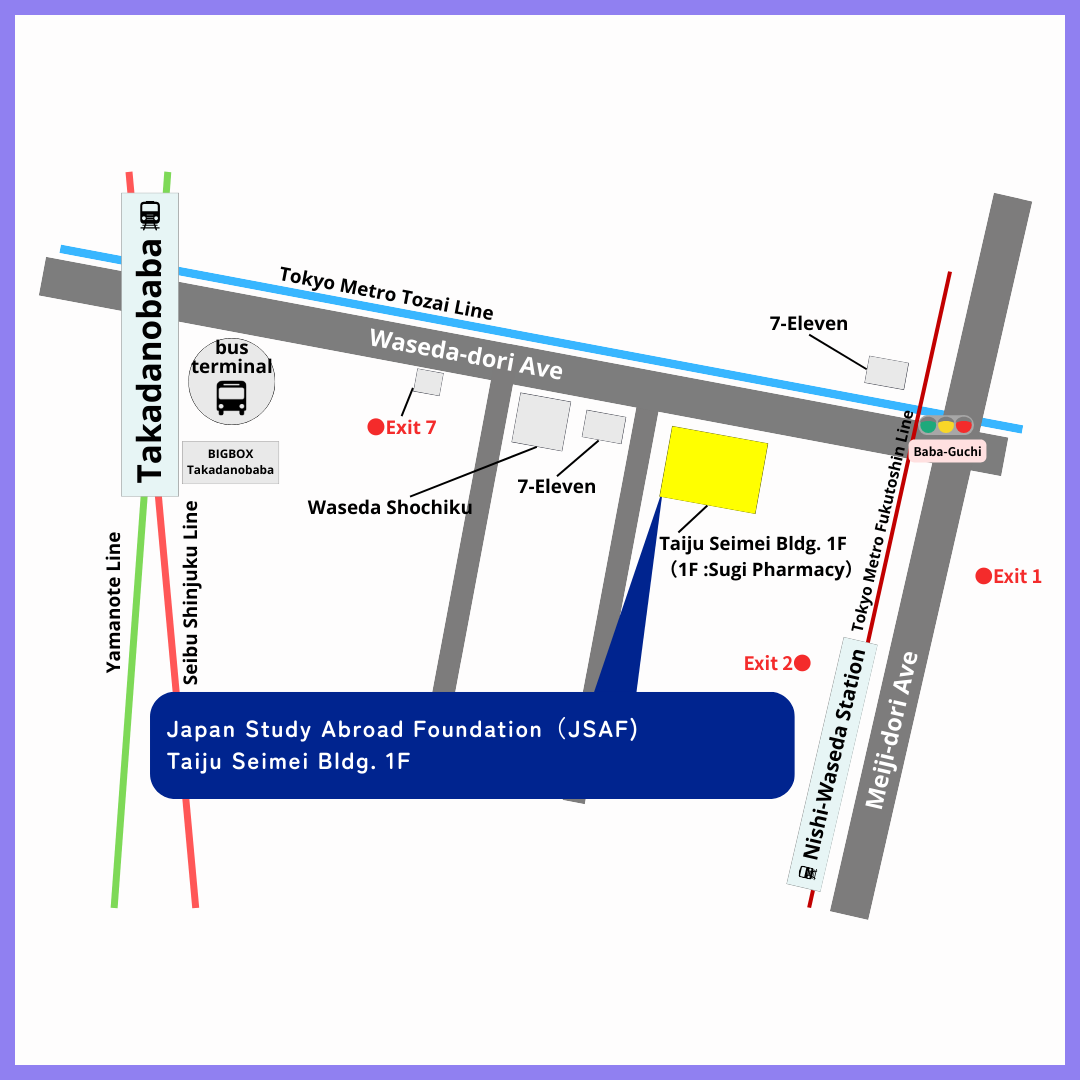 Directions to JSAF Tokyo office from nearby stations & exits ②Nishiwaseda Station