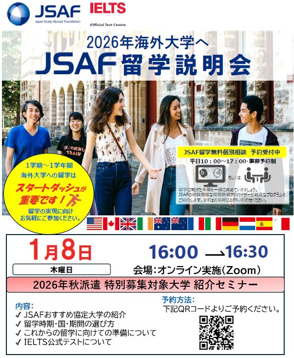 2026年秋(8月~10月出発)からの留学を検討されている方は、年始早いタイミングでのカウンセリング予約をお願いいたします。