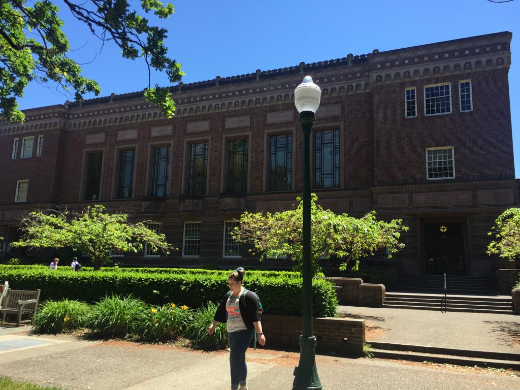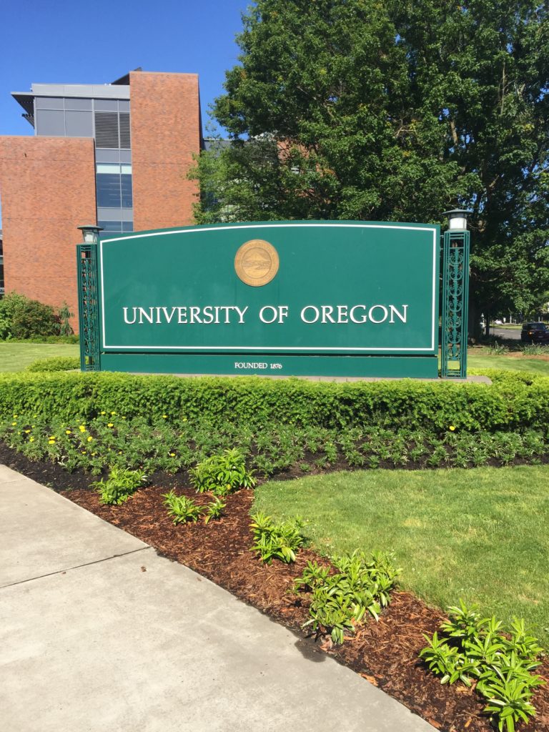 オレゴン大学は、オレゴン州第3番目の都市、ユージーンに位置しています。ユージーンのモットーは、『芸術とアウトドアの世界最大の都市』『エメラルド都市』等です。総合運動具メーカーのナイキ発祥の地としても有名です。気候は、夏と秋は涼しく、雨が多く、冬と春は暖かく乾燥しています。安全でフレンドリーな町として有名です。市内の公共交通機関は、バスになります。ポートランドまでは、車で2時間ほどの距離です。オレゴン州は、自然豊かな州として、快適な生活環境の維持に努めています。