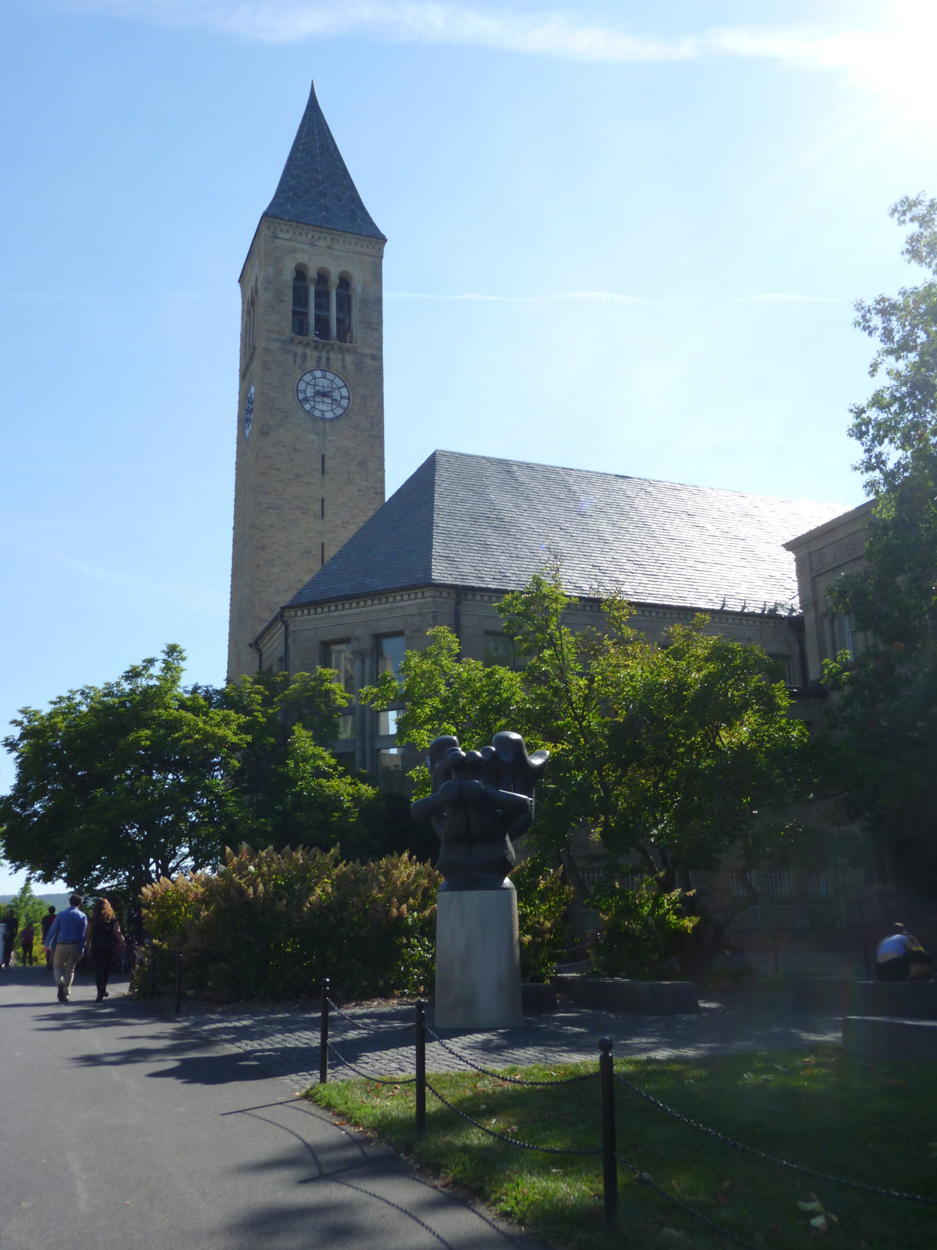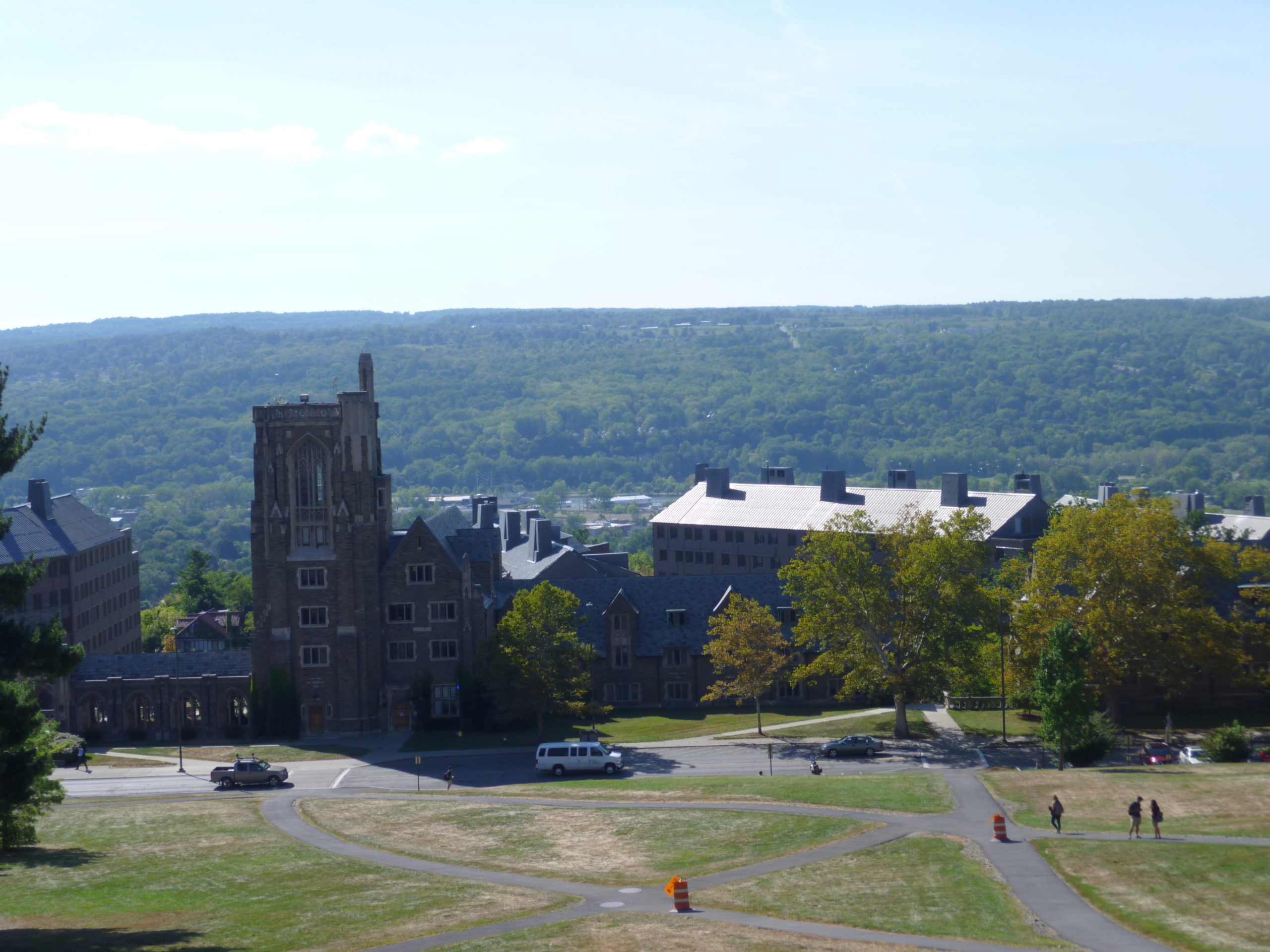 学生活動が非常に盛んで、学生団体は500以上に及びます。また、International Students and Scholars Office(ISSO)が中心となり、留学生及び世界からの教授のサポートにあたります。Campus Club of Cornell University(CCC)では、ボランティアによる英語クラスが実施されます(単位なし)。The Language Pairing Programに登録すれば、日本語を学びたい学生を紹介してもらうことができるでしょう。また、International Friendship Program(CIFP)では、卒業生を中心とする地元住民が、買い物やピクニック、ホリデーディナーなどの交流活動を通して留学生・外国人教授のサポートを行っています。カユガ湖を見下ろす高台にある美しいキャンパスは、ニューヨークシティにあるセントラルパークの設計で知られるフレデリック・ロー・オルムステッドによってデザインされました。現在では歴史的建造物に指定される古い建物からモダンなものまで、色々様式の校舎が並んでいます。中でも、一日に3回ベルを鳴らすマグロータワーは大学のランドマークとして知られています。また、キャンパスの外にはカレッジタウンと呼ばれるショッピングエリアが隣接しており、レストランやバーなどは学生たちで賑わいます。