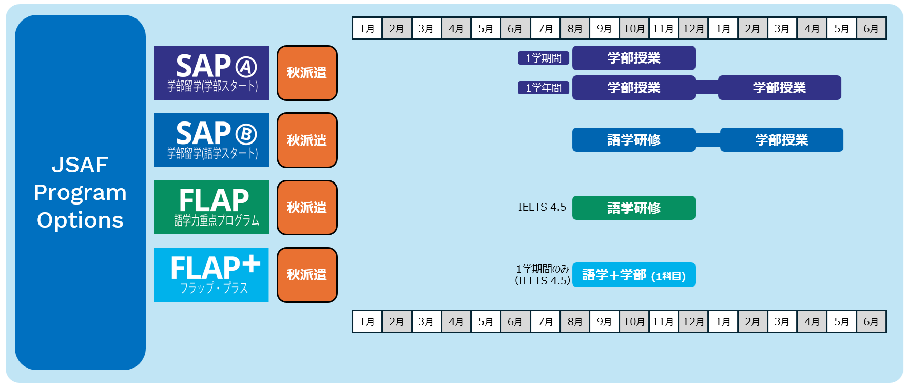 | 留学プログラム | SAP、FLAP+、FLAP |