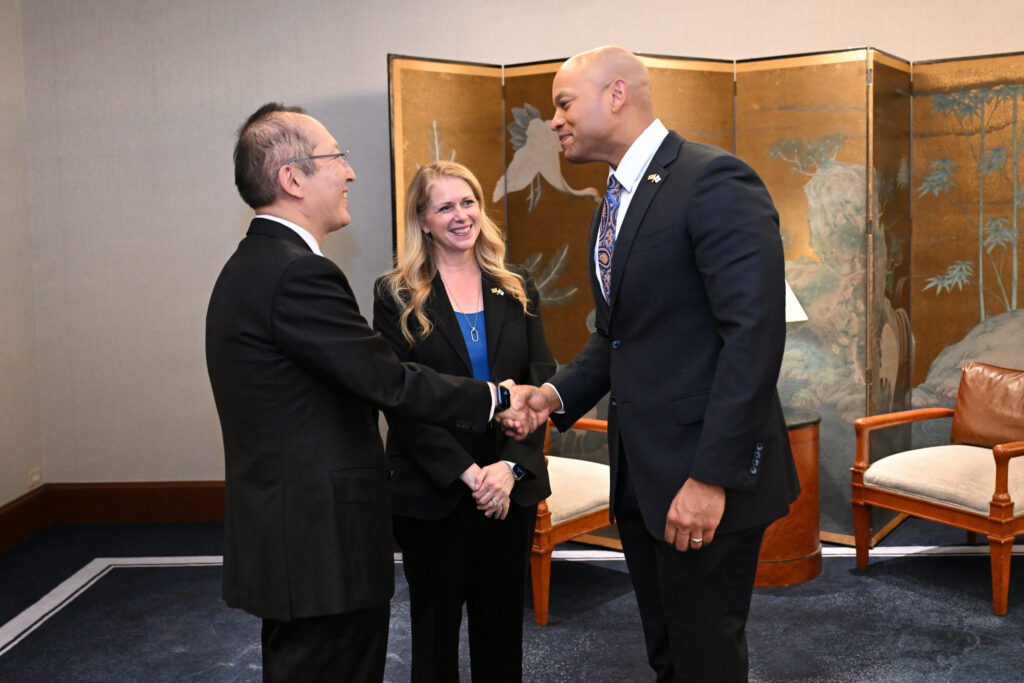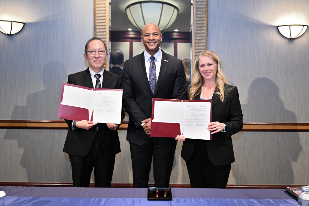 また、調印式には来日されていたメリーランド州知事のWes Moore氏に同席いただきました。「ソールズベリー大学は、我が州の偉大な宝のひとつです。SUは未来のリーダーを育て、学生に成功するための力を授け、人々の希望と可能性を高めてくれています。SUとJSAFとのパートナーシップ締結はメリーランド州と日本の関係をさらに強固なものとします」とムーア州知事は述べられ、州としてもソールズベリー大学とJSAFとの関係性をより強固なものにすべく支援をしてくださっています。