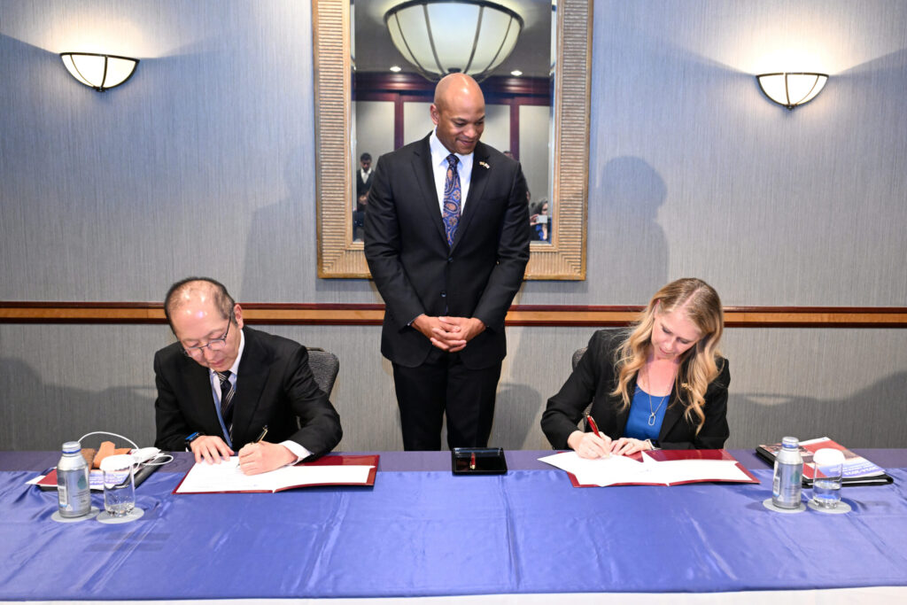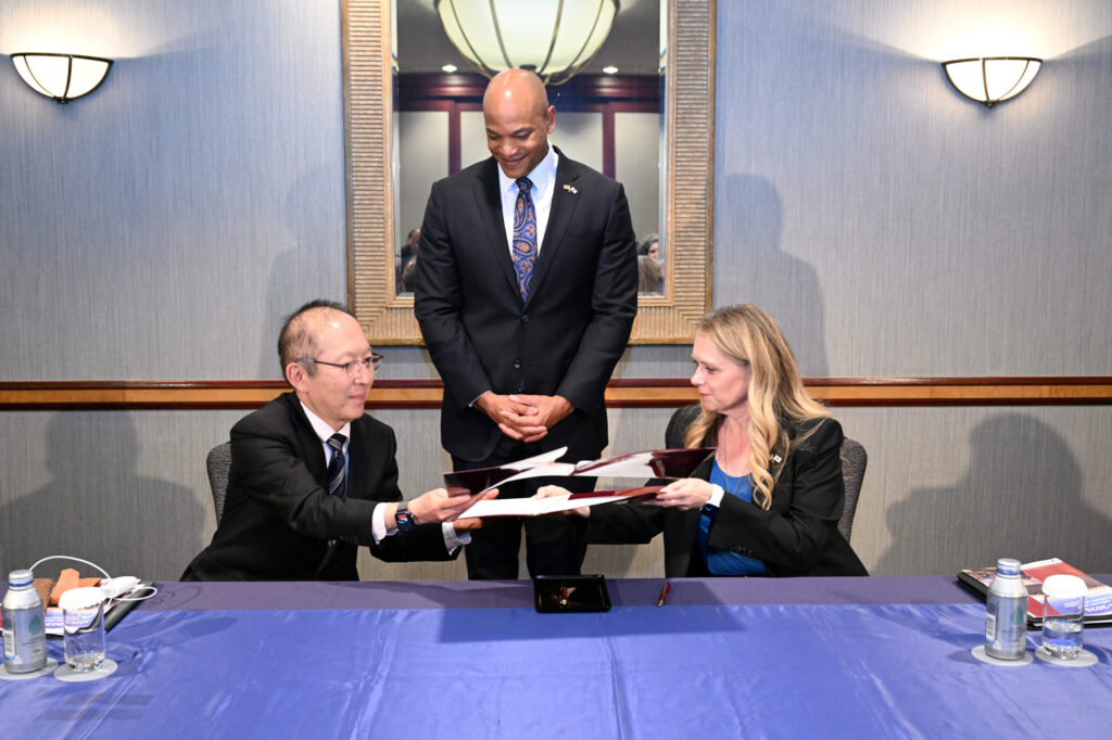 メリーランド州知事同席のもと、Lepre学長とパートナーシップ調印式を行いました。
