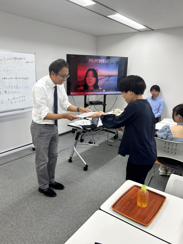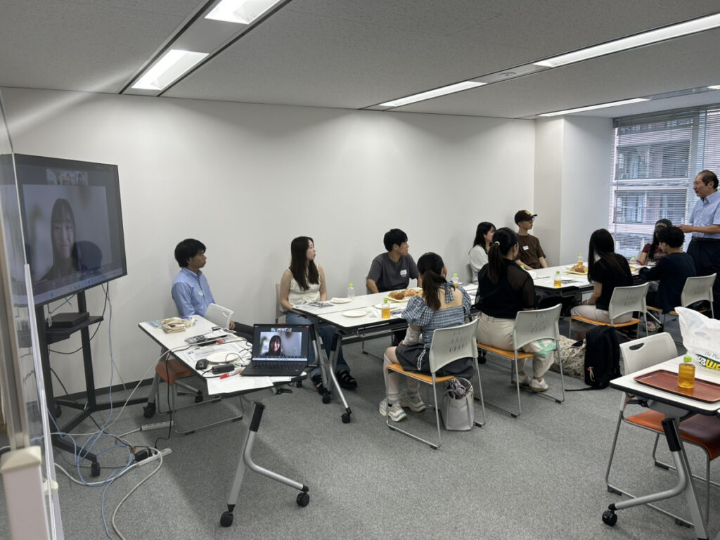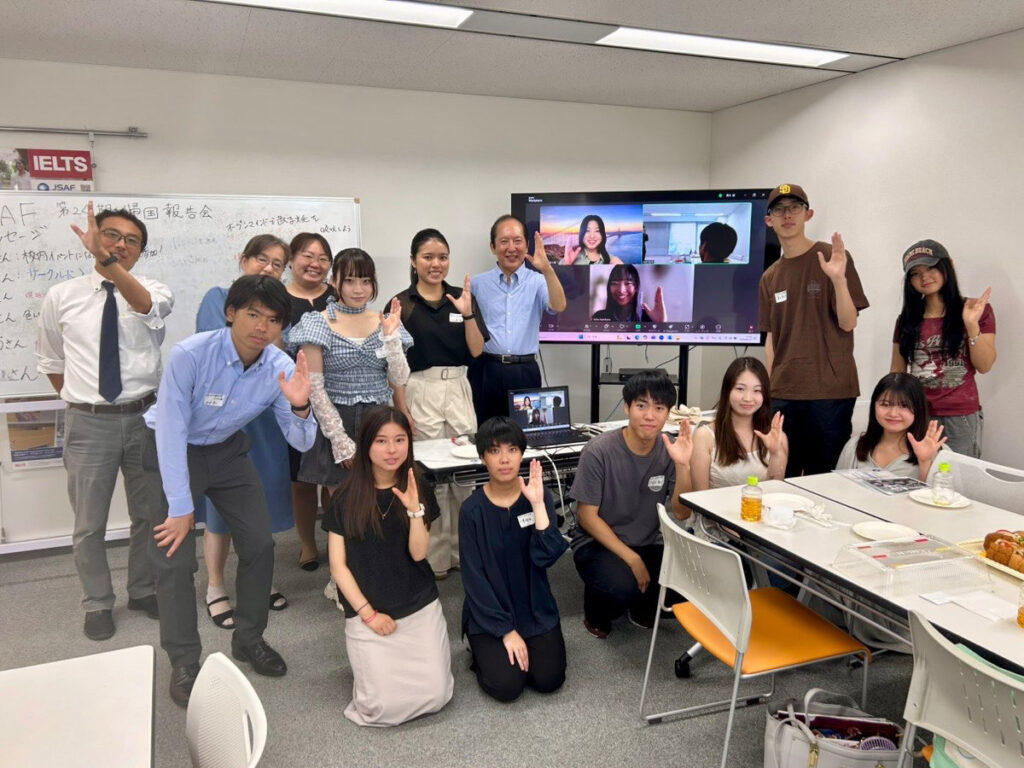 学部留学・語学留学プログラムを終えた派遣生が集まってくれました。対面参加はもちろん、オンラインからも参加してもらいました。今回も参加してくれた派遣生一人一人に留学体験談を話してもらい、留学中に撮った写真もたくさん共有してもらいました。また、今回も後輩派遣生、留学をご検討中の皆様に向けて先輩からのメッセージをもらいました。歓談も行い、JSAFスタッフや前回の報告会に来てくれた現インターン生も交えて留学中の思い出話で盛り上がりました。