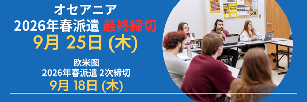 2026年オーストラリア・ニュージーランドへの留学は9月25日(木)が最終締切です。ご希望の方はお急ぎ留学カウンセリングをお申し込みください。