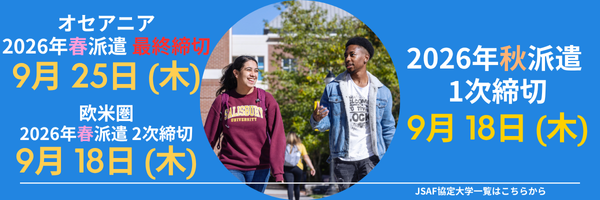 期末テストお疲れさまでした。暑い日が続きますが、来年の留学を目指している方、準備は今日から始めましょう。JSAFでは留学を検討しはじめたばかりの方から、出願希望の大学を決定している方まで、おひとりおひとりの状況に合わせてアドバイスをいたしますので、お気軽に留学カウンセリングをご利用ください。留学には、英語の勉強、留学先選定、出願、渡航まで、余裕を持った準備が大切です。2026年の留学を希望する方は、ぜひ、今日カウンセリングをご予約ください。ここからがスタートです。